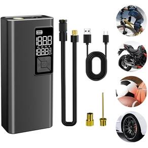 Calibrador, compressor e bomba de ar portátil com lanterna integrada. Painel digital com indicador de bateria, pressão e unidade barométrica. Botões de fácil acesso para ligar/desligar, modo, lanterna, aumentar e diminuir pressão. Compacto e silencioso.Tipo