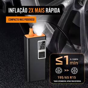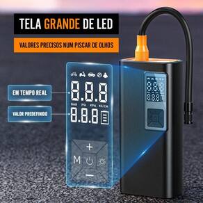Calibrador, compressor e bomba de ar portátil com lanterna integrada. Painel digital com indicador de bateria, pressão e unidade barométrica. Botões de fácil acesso para ligar/desligar, modo, lanterna, aumentar e diminuir pressão. Compacto e silencioso.Tipo