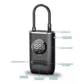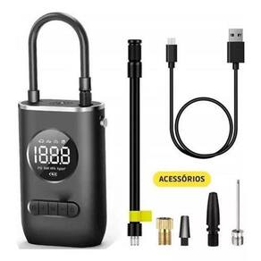 Calibrador de Pneus Digital Sem Fio - Mantenha-se Seguro com Precisão sem Complicações Compressor Portátil com bateria interna de 2000mah Recarregável, com visor digital . 1 - Sem fio, não necessita de conexão ao acendedor de . 2 - Compacto - Cerca de Altura 13,7 cm X Largura 8,9 cm, O tamanho é equivalente a um Smartphone com tela de 4,7, podendo caber facilmente no porta luvas, na moto ou em sua mochila. 3 - Leve - Peso de cerca de 395 gramas. 4 - Possui uma pequena lanterna para operação em locais de baixa iluminação. 5 - Interface de carregamento via cabo USB - Type C , mais rápido que os tradicionais incluso no kit . 6 - Acompanha bico para pneu com rosca sem perigo de soltar como as de alavanca , bico de pneu rápido, bico para bola, 2 bicos para infláveis e cabo de carregamento. OBS: Pausar por 5 minutos depois de usar por 10 minutos. Caso contrário, a temperatura crescente do escudo de metal danificará o motor. Especificação: Material: ABS 10A Tensão: 7,4V Potência: 50W Fluxo de ar: 25L / min Tipo de fonte de alimentação: TYPE-C Comprimento do cabo de alimentação: 0,8 metros Comprimento do tubo inflável: 0,5 Marca: Não Informado