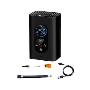 Calibrador Portátil Preto para Pneus de Carro e Moto Compressor Portátil com bateria interna de 2000mah Recarregável, com visor digital . 1 - Sem fio, não necessita de conexão ao acendedor de , nem tomada. 2 - Compacto - Cerca de Altura 13,7 cm X Largura 8,9 cm, O tamanho é equivalente a um Smartphone com tela de 4,7, podendo caber facilmente no porta luvas, na moto ou em sua mochila. 3 - Leve - Peso de cerca de 395 gramas. 4 - Possui uma pequena lanterna para operação em locais de baixa iluminação. 5 - Interface de carregamento via cabo USB - Type C , mais rápido que os tradicionais incluso no kit . 6 - Acompanha bico para pneu com rosca sem perigo de soltar como as de alavanca , bico de pneu rápido, bico para bola, 2 bicos para infláveis e cabo de carregamento. OBS: Pausar por 5 minutos depois de usar por 10 minutos. Caso contrário, a temperatura crescente do escudo de metal danificará o motor. Especificação: Material: ABS 10A Tensão: 7,4V Potência: 50W Fluxo de ar: 25L / min Tipo de fonte de alimentação: TYPE-C Comprimento do cabo de alimentação: 0,8 metros Comprimento do tubo inflável: 0,5M Marca: Não Informado