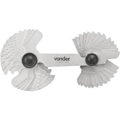 Calibre/pente de rosca 52 lâminas cr-052 vd Conteúdo da embalagem: 1 cálibre/pente de rosca, composto por 52 lâminas, sendo: 24 lâminas rosca métrica 60° com passo de 0,25 mm até 6,0 mm e 28 lâminas rosca polegada 55° de 62 até 4 fios por polegada Indicado para identificar roscas Capacidade do calibre de rosca mm : 0,25 mm a 6,0 mm passo Capacidade do calibre de rosca pol : 62 fios por polegada a 4 fios por polegada Quantidade de lâminas rosca métrica do calibre de rosca: 24 lâminas Quantidade de lâminas rosca polegada do calibre de rosca: 28 lâminas Tipo de gravação: Baixo relevo Material: Aço carbono cdc : legal: 90 dias Marca: Não Informado