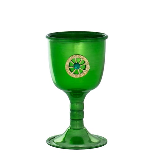 Cálice Ritual Roda Cigana Esmeralda em Alumínio 14 cm 200 ml