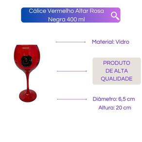 Cálice Vermelho Altar Rosa Negra 400 ml 20 cm Vidro Celebra Cálice Vermelho com rosa negra, faça a sua saudação e agrado. Simboliza a alegria de viver, sensualidade, luz e proteção.