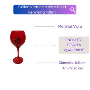 Cálice Vidro para Altar 20 cm 400 ml - Escolha a Cor Cor: Vermelho Rosa Vermelha Cálice Vidro para Altar 20 cm 400 ml - Escolha a Cor