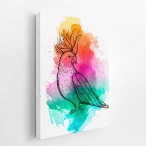 Calopsita Passarinho Tinta Aquarela Quadro Canvas 60X40Cm