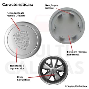 CARACTERÍSTICAS: - Feito em Plástico de Alta Resistência - Modelo: Fuchs Porsche - Cor: Prata - Instalação Realizada Através de Encaixe - Acabamento Perfeito - Emblema da Montadora em Baixo Relevo - Alta Qualidade e Resistência