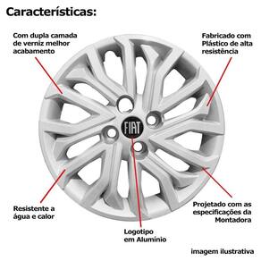 Com um emblema em alumínio que adiciona um toque de sofisticação, essa calota é compatível com diversos modelos, como Palio, Siena, Novo Uno, Mobi, Argo e Cronos. No entanto, é importante ressaltar que não é compatível com a Strada, Palio Adventure e Nova Fiorino.