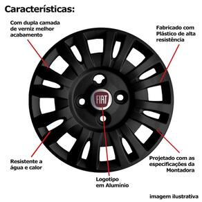 Além disso, essa calota acompanha uma unidade do modelo especificado com emblema de alumínio incluso.