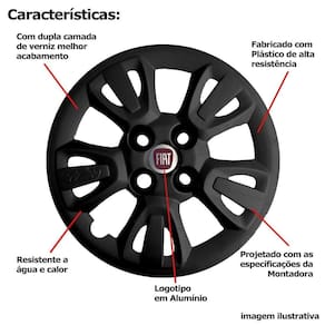 Fabricada em plástico resistente, essa calota possui dupla camada de verniz, o que a torna resistente à água e ao calor. Além disso, ela é feita de acordo com os padrões da montadora, garantindo um encaixe perfeito em seu veículo. A fixação é feita por parafusos e a furação é de 4x100, com cubo baixo. Seu acabamento na cor preto fosco confere um visual moderno e sofisticado ao veículo.
