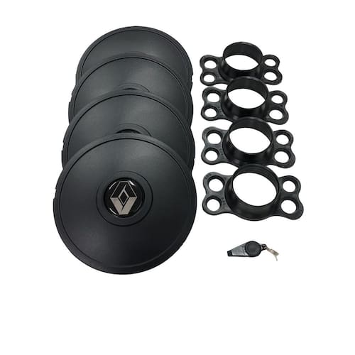 jogo de calotas de centro com suporte inovador de travamento exclusivo que não solta para valorizar a roda. Vantagens: fácil instalação; encaixe perfeito, reduzindo desconforto com barulho; maior resistência ao aquecimento da roda; protege os parafusos de fixação das rodas contra sujeira; sistema anti-perda com suporte de encaixe fixado junto ao parafuso da roda; posicionada acima da linha de atrito com a guia, evitando riscos e danos indesejados; facilidade na limpeza e conservação da roda. Marca: miollo compatibilidade: rodas de ferro modelo renault clio aro 14 que possuam o código jante conforme mencionado abaixo fixação: calota encaixada no suporte fixado em 2 parafusos específico para cada aro/modelo com travamento que não solta material: calota em abs e suporte em nylon com fv15% cor da calota: preta emblema: adesivo resinado diâmetro da calota: 18,5 cm conteúdo da embalagem: 4 calotas + 4 suportes de fixação + 4 emblemas + chave