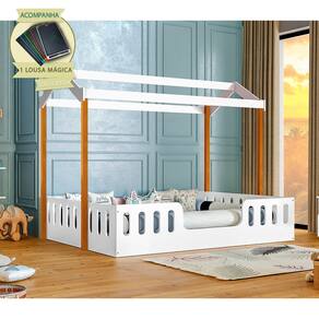 Cama Ágatha Casal Infantil Casinha Segura Montessoriana - Branca/Castanho Claro Incluso Lousa Mágica - Branco