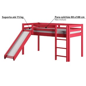 Cama Alta Kids com Escorregador em Madeira Maciça - Vermelho