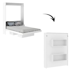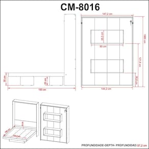 Características: Estrutura em MDP Acabamento BP Possui Sistema de Articulação (dobrável) e Trava Possui Chave para Uso Fechada 02 Nichos Medida Máxima de Colchão Indicado: 140,6cm ou 190cm Deve ser Obrigatoriamente Fixada na Parede Suporta até 240kg sem Impacto NÃO ACOMPANHA COLCHÃO