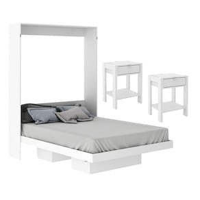 Cama Articulada Casal CM8016 com Kit 2 Mesas de Cabeceira Branco - Tecnomobili
