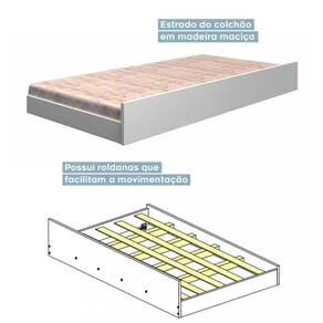 Características: Acabamento pintura UV Altura do estrado até o chão 9 cm Estrutura do estrado madeira maciça Estrutura em MDF Possui roldanas Tipo de estrado removível Tamanho do Colchão Indicado 188x88 cm