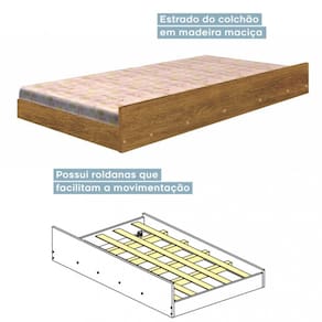 Características: Acabamento pintura UV Altura do estrado até o chão 9 cm Estrutura do estrado madeira maciça Estrutura em MDF Possui roldanas Tipo de estrado removível Tamanho do Colchão Indicado 188x88 cm