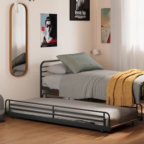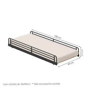 A cama auxiliar Teko é a solução ideal para otimizar o espaço com estilo e funcionalidade. Projetada para ser usada com os demais itens da linha, como a cama, o beliche e a cama alta Teko, ela oferece mais praticidade para acomodar visitas ou ampliar o conforto do ambiente. Sua estrutura metálica de alta resistência suporta até 80 kg, garantindo durabilidade e segurança. Com rodízios, a movimentação é leve e silenciosa, sem riscos para o piso. O estrado em MDF proporciona estabilidade e suporte adequado para o colchão. Com design industrial e um toque retrô, a cama auxiliar Teko é perfeita para quem busca versatilidade sem abrir mão do estilo. Acompanha Cama Auxiliar: Não Acompanha Colchão: Não Altura do Estrado até o Chão: 5,5 cm Ambiente Principal: Quarto Infantil codigo_ean: 7900288145918 Complexidade da Montagem: Média: pode ser montado por mais de uma pessoa e/ou necessite de maior conhecimento para montagem Cor: Preto Fosco / Álamo Cor do Produto: Preto Fosco / Álamo Escala de Brilho: Semi-Fosco Extensível: Não Itens Inclusos: 1 cama auxiliar, 1 kit ferragens e 1 manual de montagem Linha ou Coleção: Linha Teko Manual de Montagem e Instalação: https://cdn2.madeiramadeira.com.br/prd/sedlak-representacao/2918189-168-9235a300-b87a-4079-acaa-e5aee549ba20-1747050921.pdf Marca: Casatema Material do Estrado: Pinus Material Principal: Aço Necessita Montagem: Sim Origem do Produto: Nacional Permite a Utilização de Cama Auxiliar: Não Peso: 18 kg Peso Suportado por cada cama: 80 kg Possui Baú: Não Possui Gavetas: Não Possui Grade: Não Possui Pés: Não Possui Portas: Não Possui Prateleiras: Não Possui Rodízio: Sim Recomendações de Uso, Manutenção e Limpeza: Use um pano macio, levemente umedecido com água. Não utilize solventes ou abrasivos.Para garantir estabilidade e durabilidade, é recomendado reapertar os parafusos de tempos em tempos. Rodízio com Trava: Não Sistema de Montagem: Parafusos Tamanho do Colchão Indicado (L x C): 78x188cm Tipo de Cama: Auxiliar Tipo de Colchão: Solteiro Auxiliar Tipo de Estrado: Fixo