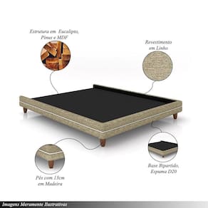Cama Avulsa Para Colchão Casal Torres Pés Em Madeira Linho Bege G91 - Gran Belo