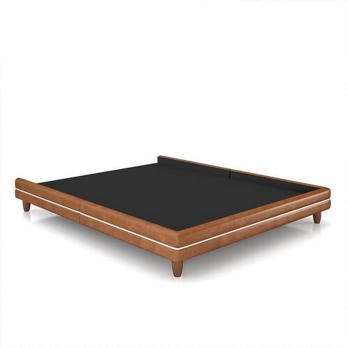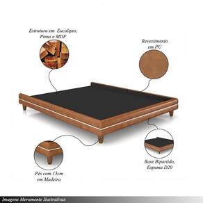Cama Avulsa Para Colchão Casal Torres Pés Em Madeira Pu Caramelo G91 - Gran Belo