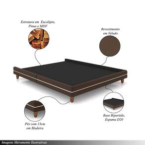Cama Avulsa Para Colchão Casal Torres Pés Em Madeira Veludo Marrom G91 - Gran Belo