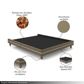 Cama Avulsa Para Colchão Queen Torres Pés Em Madeira Veludo Castor G91 - Gran Belo
