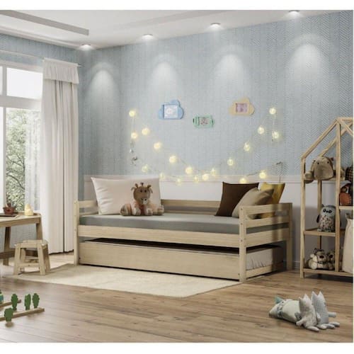 A Cama Babá Prime tem um design mais clean e despojado que vai deixar o quartinho do(da) pequeno(a) muito mais aconchegante e atraente. Perfeita para a babá ou para acomodar confortavelmente e em alto estilo a visita da vovó. Na cor marroml da madeira, um recurso de fácil combinação aos diferentes estilos de decoração. A cama auxiliar é de fácil manuseio, conta com 2 rodízios para tornar o dia-a-dia mais prático. O fato de ser toda em Madeira ripada nós dá a impressão de um ambiente mais amplo e informal. Toda em madeira maciça reflorestada e acabamento em verniz, que trará mais qualidade e durabilidade ao seu produto. Ideal para colchão padrão solteiro 88x188 com recomendação de até 100 kg. Acompanha Colchão: Não Altura do Conjunto: 68 cm Ambiente: null Ambiente Principal: Quarto Infantil Cor: Marroml Informação Complementar: 1x Cama Auxiliar Prime II MarromlLargura: 188Altura: 21Peso: 13Profundidade: 85.3Necessita Montagem: Sim1x Cama Infantil em Madeira Maciça Prime MarromlLargura: 198Altura: 68Peso: 25Profundidade: 99.59999999999999Necessita Montagem: Sim Material Principal: Madeira Maciça Possui Portas: Não Suporta Até (kg): 100