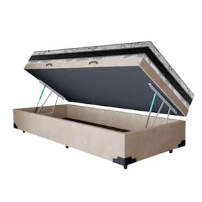 Cama Base Box Baú Solteiro Super Confort Suede Bege + Colchão Solteiro Super Confort D33 24x88x188