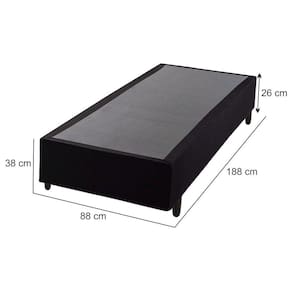 Estrutura: Em madeira 100% eucalipto Revestimento: Tecido Jacquard na coloração pretoPés: Sim, em madeira, com altura de 12 cm Suporta: Peso de ate 120 kgIndicado para: colchão de casa com largura de 88 cmDimensões do produto montado