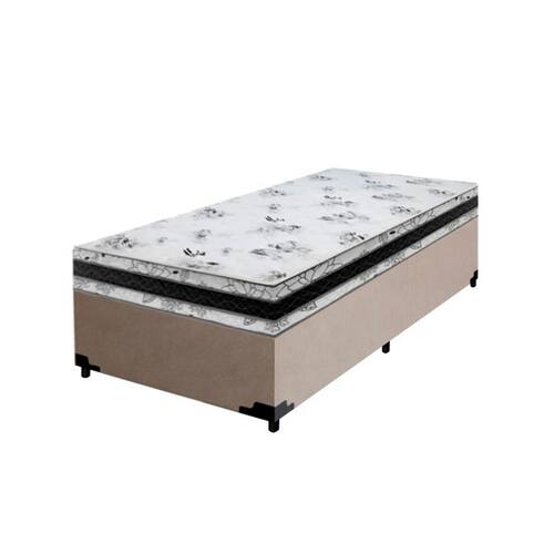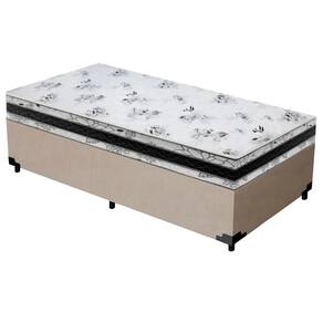Cama Base Box Solteiro Super Confort Suede Bege + Colchão Solteiro Super Confort D33 24x88x188