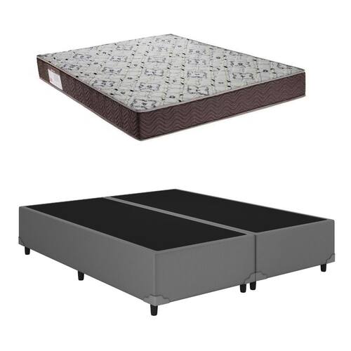 Cama Base Queen Bipartido Corino Cinza + Colchão Iso 150 D45 158x198x18 - Ortobom