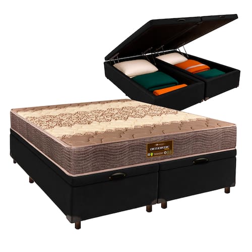 Cama + Bau Blindado e Colchão D26 Queen - Ortophedic Sankonfort - Nature | Off White | Gengibre