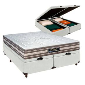 Suporte de até 120kg por pessoa, ideal para uso diário com firmeza equilibrada Base baú Casal com 42cm de altura e amplo espaço interno para organização