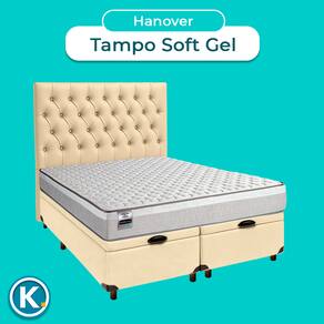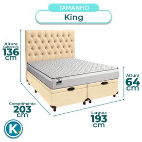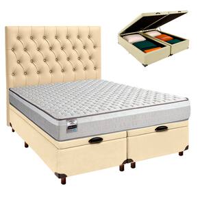 Cama + Bau Blindado e Colchão Molas Ensacadas King - Hanover Inducol + Cabeceira - Bege