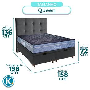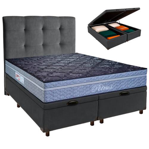 Conjunto Queen Colchão Petrus + Cama Box BauColchão Queen com 30cm de altura, ideal para quem busca conforto e robustezRevestimento em poliéster resistente, com toque macio e acabamento modernoSuporta até 150kg, oferecendo alta durabilidade e firmeza para diferentes biotiposBase baú Queen com 42cm de altura e amplo espaço interno para organizaçãoRevestimento em Veludo , fácil de limpar e com visual modernoEstrutura reforçada com capacidade para até 150KgFicha Técnica Colchão:Modelo: PetrusMarca: ParopasTamanho: QueenTecido: PoliésterLargura: 158cmComprimento: 198cmAltura: 30cmSuporte de Peso: 150KgGarantia: 3 MesesFicha Técnica Cama Box Bau:Modelo: EliteMarca: NatureTamanho: QueenTecido: VeludoLargura: 158cmComprimento: 198cmAltura: 35cmAltura dos Pés: 7cmMaterial dos Pés: MadeiraSuporte de Peso: 150KgPeso: 40KgGarantia: 3 MesesAtenção:Antes da compra certifique-se de que o produto passa por elevadores, portas e corredores.As transportadoras não realizam entregas por escadas ou içamentos.Caso o item não caiba no elevador, a entrega será considerada concluída no térreo do prédio.A cor e tonalidade do produto pode variar de acordo com o dispositivo que o usuário está acessando.