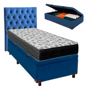 Cama + Bau Blindado e Colchão Ortobom D33 Solteiro - Iso100 + Cabeceira - Azul