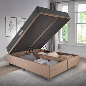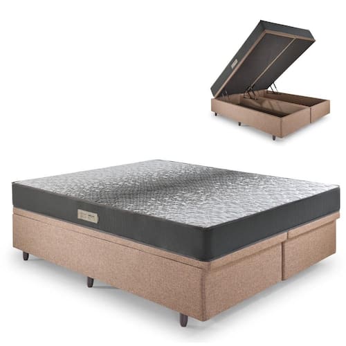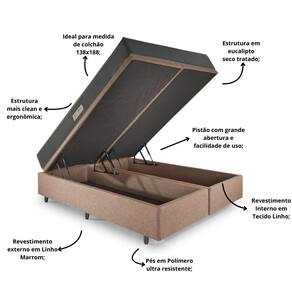 Cama Baú Casal 138x188 Bipartido Linho Marrom com Dual Firm Espuma Ecoflex