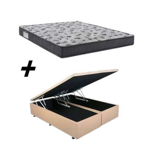 Cama Baú Casal Bipartido Corino Bege + Colcão Iso 100 D33 138x188x18 - Ortobom
