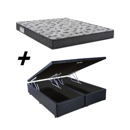 Cama Baú Casal Bipartido Corino Cinza + Colcão Iso 100 D33 138x188x18 - Ortobom