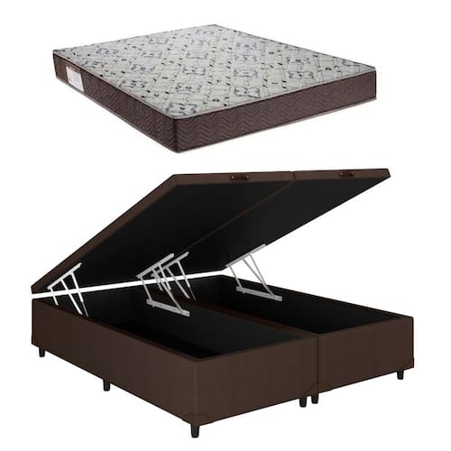 Cama Baú Casal Bipartido Corino Marrom + Colcão Iso 150 D45 138x188x18 - Ortobom