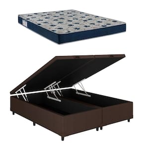 Cama Baú Casal Bipartido Corino Marrom + Colcão Iso 60 D28 138x188x18 - Ortobom