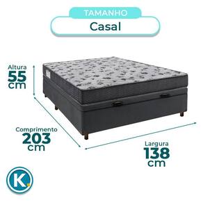 Cama + Bau Cinza E Colchão D33 Casal - Iso100 Ortobom Conjunto Casal Colchão Iso100 + Cama Box Bau Colchão casal com 18cm de altura, ideal para conforto no dia a dia