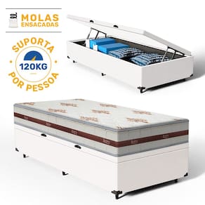 Cama Solteiro Baú Larissa Branca Com Colchão