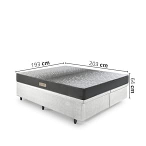 Conjunto Baú King Bipartido + Colchão Dual Firm Espuma Ecoflex King 193x203O Dual Firm possui como diferencial o pillow duplo, no sistema dupla face, que permite utilizar os dois lados do colchão. É durabilidade, qualidade e conforto em dobro!Por que escolher a cama Baú King?Conheça os diferenciaisCompromisso com o meio ambienteO Baú King Bipartido conta com Madeira de eucalipto tratada, proveniente de reflorestamento, com padrão de qualidade de exportação;A embalagem é confeccionada com materiais 100% reciclados e a empresa conta com logística reversa.Cuidado nos mínimos detalhes: logística nota 10O produto é 100% embalado com papelão e plástico, o que garante a integridade do produto, após todo o processo logístico.Medidas do BaúMedida Externa:193x203x34cm sem pés193x203x42cm com pésMedida Interna:127x177x25cmCaracterísticas estruturais do Baú:- Tecido em Courino Linho:- TNT de alta gramatura;- Costura reta;- Acabamento impecável: sem parafusos a mostra no fundo do baú que é parafusado por baixo;- Pés em Polímero.Cuidados e higienização:O produto é de fácil higienização, pois conta com tratamento impermeabilizante, assim, apenas um pano umedecido com água é suficiente.*Não é indicado o uso de produtos químicos.Características Dual Firm Espuma EcoflexAcabamento:Pillow DuploTecido Plano EstampadoColchão indicado para uso de até 120kg individual.Nível de conforto: FirmeItens que serão entregues:- 1 Cama Baú King 193x203x42cm (duas peças 96x203x42)- 1 Caixa de Pezinhos- 1 Arco de apoio que será fixado na parte de trás do baú para colchão não escorregar.- 1 Colchão Dual Firm King 193x203x22cmINFORMAÇÕES IMPORTANTES:- Confira as dimensões do produto e certifique-se de que estão adequadas aos elevadores, portas e corredores do local da entrega, pois não fazemos a montagem e desmontagem do produto e/ou portas e janelas, nem içamento pelo lado de fora do prédio ou da residência.- A transportadora não realiza a montagem do produto, não sobe escadas, apenas elevadores, caso não suba por elevador, a responsabilidade de subir o produto é do cliente.- É informado previamente o dia que será realizada a entrega, mas não é feito agendamento de horário.- Foto meramente ilustrativa