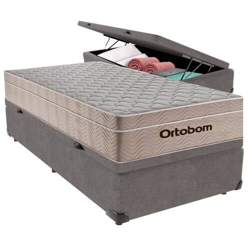 Bem-vindo(a) ao nosso catálogo!Apresentamos a você uma descrição completa sobre esse produto:O Colchão Airtech da Ortobom é a escolha perfeita para você que busca conforto para noites de sono!Produzido com Molas Ensacadas, ele garante a sustentação ideal para a sua coluna enquanto proporciona um conforto Macio.Seu acabamento com Euro Pillow garante um toque macio e noites revigorantes.A Base Baú da KazaMix garante conforto e qualidade. A madeira utilizada na produção da Base Box é proveniente de reflorestamentos, o que garante uma matéria-prima renovável e sustentável. Além disso, a base box é revestida com um tecido de alta qualidade, que proporciona um toque suave e agradável.FICHA TÉCNICA DO COLCHÃOModelo: AirtechMarca: OrtobomTamanho: SolteiroDimensões: 88x188x25 (Largura x Comprimento x Altura)Conforto: MacioSistema: Molas EnsacadasPillow: Euro PillowPeso Máximo recomendado: 120 kg (Por pessoa)Proteções: Antiácaro, antialérgico, antifungo, antimofoGarantia: 12 Meses pelo fabricanteFICHA TÉCNICA DA BASEModelo: BaúMarca: KazaMixCor: CinzaTamanho: SolteiroDimensões: 88x188x37 (Largura x Comprimento x Altura)Altura dos pés: 5Altura Total: 37Peso Máximo recomendado: 150 kg (Por pessoa)Proteções: Antiácaro, antialérgico, antifungo, antimofoGarantia: 3 Meses pelo fabricanteAtenção: Certifique-se de que o produto passa por elevadores, portas, escadas e corredores, pois não realizamos içamentos ou transporte especial. Não fazemos montagem ou desmontagem de produtos. As cores podem sofrer uma pequena alteração de acordo com a tela.