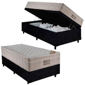 Cama Baú Solteiro Preto Colchão Molas Ensacadas Airtech Spring 88x188 - Ortobom