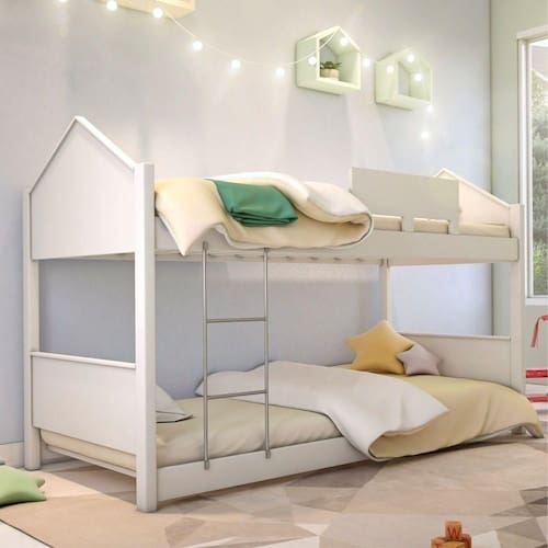 Cama Beliche Casa Branca Montessoriana Beliche Solteiro Exclusiva Casinha Branca