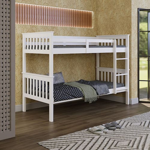 Cama Beliche Solteiro De Madeira Dupla Em Altura Suspensa - Branco