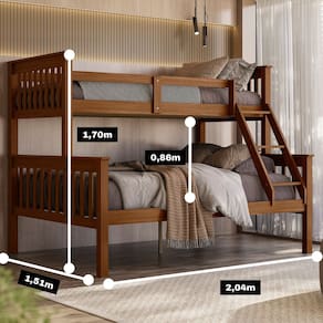 Dimensões do beliche com cama de casal: Comprimento (cm): 204 Altura (cm): 170 Largura (cm): 151