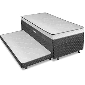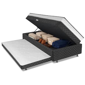 Importante sobre a : A é realizada até a portaria ou porta de entrada do indicado, desde que o acesso seja permitido. Para locais com portaria, a será feita no piso térreo. Não realizamos montagem, desmontagem, por escadas ou içamento. É responsabilidade do cliente verificar se as dimensões do produto são compatíveis com portas, elevadores e corredores. Evite imprevistos: confira todos os detalhes antes de concluir sua compra. MEDIDA TOTAL DO PRODUTO:: [ A ] = 51 cm / 44 cm ( Sem Pés ) [ L ] = 88 cm [ P ] = 188 cm | MEDIDA DA CAMA AUXILIAR:: [ A ] = 17 cm / 10 cm ( Sem Pés ) [ L ] = 75 cm [ P ] = 168 cm | MEDIDA INTERNA DO BAÚ:: [ A ] = 15 cm [ L ] = 74 cm [ P ] = 174 cm | ALTURA DOS PÉS:: 7 cm | PESO:: 53,8 Kg | PESO SUPORTADO:: 80Kg | MODELO:: Cama Bibox com Baú Solteiro Ortopédica com Cama Auxiliar Conjugada 88x188x51cm Gabi | MARCA:: Somopar | REVESTIMENTO SUPERIOR E LATERAL:: Acabamento em tecido poliéster de alta qualidade, com bordado nas laterais que adiciona um toque de sofisticação e elegância ao design. | REVESTIMENTO INTERNO:: Camada de espuma D28 dentro dos padrões ABNT, de alta qualidade, com suporte ortopédico que garante firmeza e conforto na medida certa, suportando até 80 kg por pessoa. | EURO PILLOW:: Sim, acabamento sofisticado que traz um toque extra de maciez, elegância e conforto premium para suas noites de sono. | MATERIAL DA ESTRUTURA:: Produzida em madeira de eucalipto de alta resistência, garantindo durabilidade, firmeza e suporte por muito mais tempo. | MATERIAL DO PISTÃO:: Molas | MATERIAL DOS PÉS:: PVC | QUANTIDADE DE PÉS:: 8 | DIFERENCIAL:: 4 em 1 | ITENS INCLUSO:: 1 Cama box baú conjugada Solteiro com 1 Cama auxiliar Solteiro | GARANTIA:: 3 Meses Pelo Fabricante | AVISO:: Importante sobre a : A é realizada até a portaria ou porta de entrada do indicado, desde que o acesso seja permitido. Para locais com portaria, a será feita no piso térreo. | Altura da cama principal: 51 cm | Comprimento da cama principal: 188 cm | Largura da cama principal: 88 cm | Quantidade de caixas de embalagem: 1 | Tamanho: solteiro | Tipo de enchimento: Espuma | Altura da embalagem: 46 cm | Comprimento da embalagem: 191 cm | Largura da embalagem: 91 cm | Peso da embalagem: 53 g | Tipo da embalagem: sem embalagem adicional | Cor: Cinza/Bran