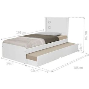 Cama Bibox Solteiro Barcelona - Branco Cama Bibox Solteiro Barcelona 107x96x195 cm - Branco A Cama Bibox Solteiro Barcelona é belíssima e conta com um design funcional, que ocupa pouco espaço no ambiente. A cama auxiliar fica embaixo da principal e basta puxá-la por meio das corrediças para começar a fazer uso dela. É ideal para quartos pequenos e para caso precise de uma cama extra para receber um amigo, ou divida o dormitório com alguém. Feita em MDF e MDP e seu acabamento é feito com pintura UV brilhante tornado-a um produto resistente e com aspecto de por muito mais tempo. É uma excelente escolha para acomodar colchões de solteiro na medida de 88 cm de largura. Informações do produto: - Cama: Altura: 107 cm Largura: 96 cm Comprimento: 195 cm - Cama Auxiliar: Altura: 26 cm Largura: 188 cm Comprimento: 92 cm Cor do produto: Branco Material: MDF/MDP Ideal para colchões de: 88 cm x 188 cm - solteiro (colchão não incluso) Garantia: 3 meses contra defeito de fabricação. Peso máximo suportado: 95 kg por cama. Informações complementares: - Fotos meramente ilustrativas do produto no ambiente. - Verificar descrição e tamanho do produto antes da compra. - Avaliar a mercadoria no ato do recebimento e recusar em caso de divergência ou . - Mantenha as informações de contato e endereço de atualizados para entrarmos em contato caso necessário. * Sugerimos a contratação de um montador para a montagem do produto. Não nos responsabilizamos por causadas no ato da montagem. * Não nos responsabilizamos pela montagem e desmontagem do produto no ato da e , assim como os custos gerados nestas situações. * A transportadora rá o produto no andar térreo do endereço de . * Não nos responsabilizamos por subir escadas, corredores e elevadores ou transporte por guincho em apartamentos.